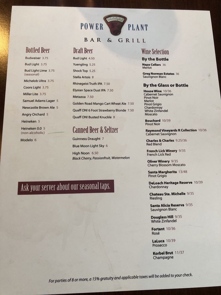 Power Plant Bar & Grill Menu (Update 2025)